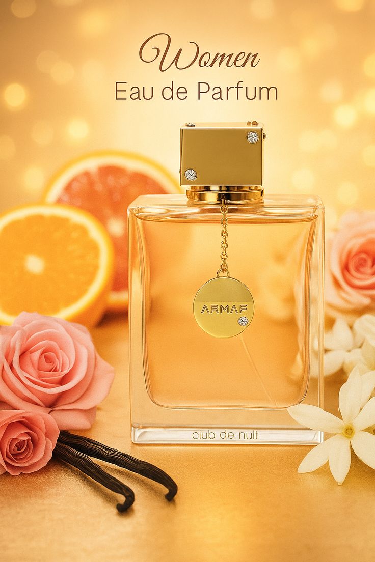 Elegant, sensual, and timeless - Club de Nuit Woman is a floral-fruity fragrance that celebrates the power and beauty of femininity. It opens with a soft sparkle of orange, grapefruit, and peach, unfolding into a luxurious bouquet of rose, jasmine, and geranium.
